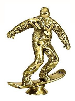 Soška snowboard zlato bez mramorového podstavce, výška sošky je 13 cm. Sošku lze umístnit na víka pohárů, trofejí nebo na mramorový podstavec.