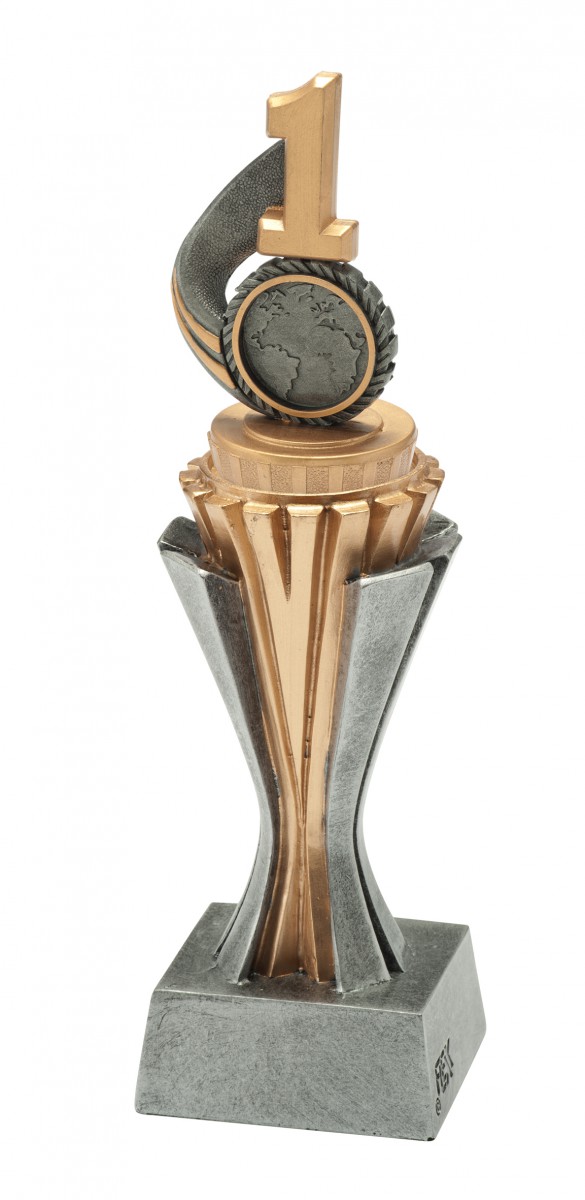 Sportovní trofej FX000.1 1. místo, trofej se soškou o výšce 22 cm, barva nohy stříbrná/zlatá.