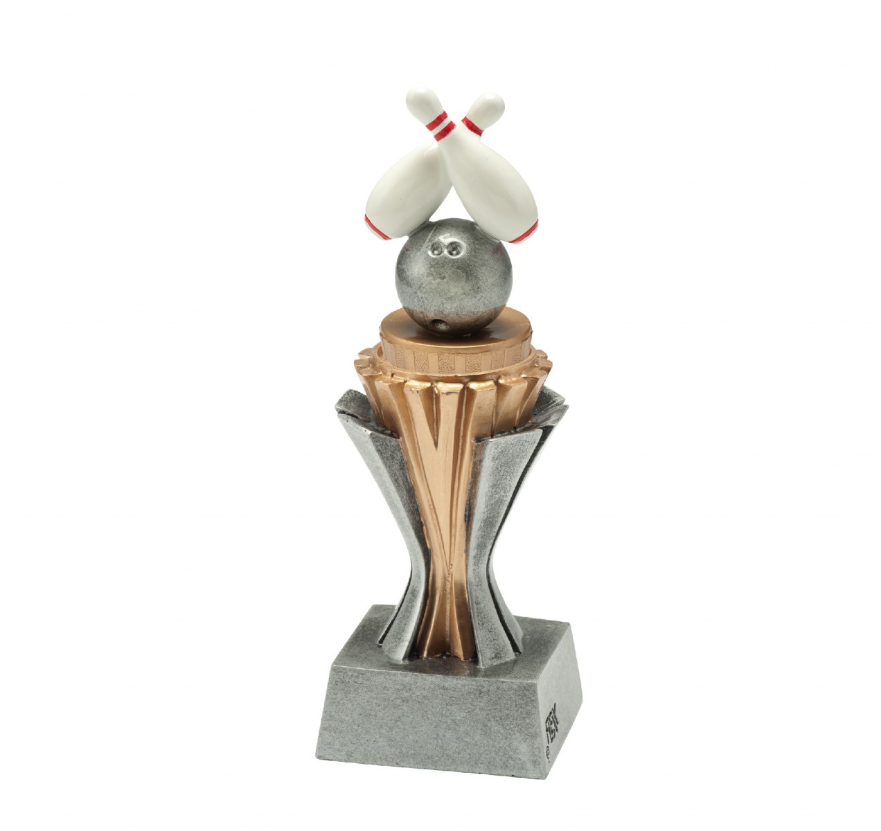 Sportovní trofej FX040.2 bowling, trofej se soškou o výšce 19 cm, barva nohy stříbrná/zlatá.