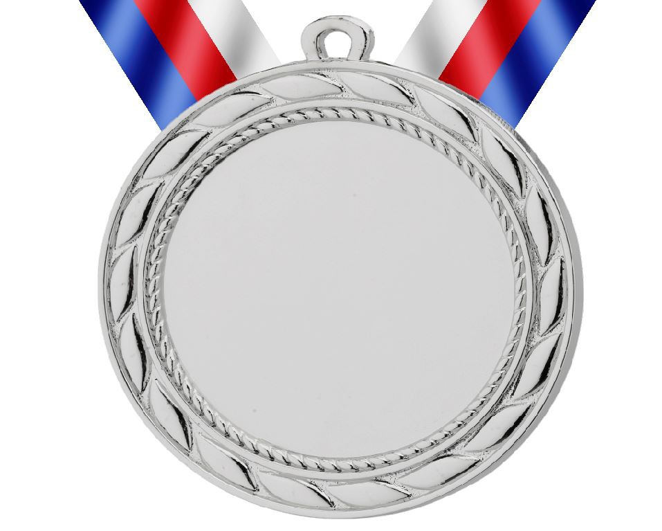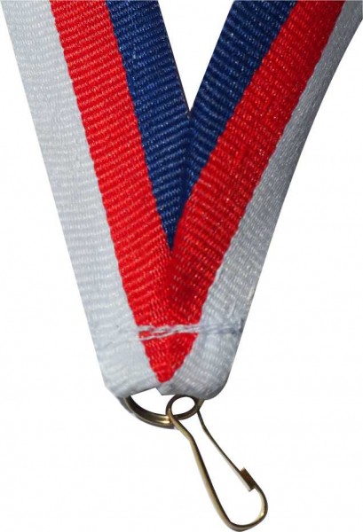 Medaile MD90 stříbro s 22 x 800 mm trikolórou na karabině; průměr medaile 70 mm s možností umístění emblému 50 mm na přední stranu medaile nebo lze vyrobit kruhový štítek dle zaslaného návrhu i na zadní stranu medaile.