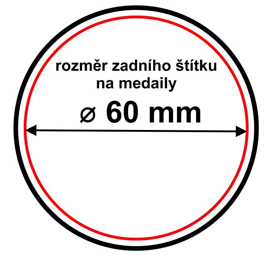 - velikost zadního vlastního štítku do medaile: ⌀ 60 mm