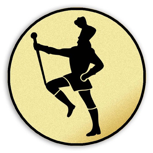 Tištěný emblém mažoretky, průměr 60 mm. Jedná se o zlatou samolepku s černým potiskem. Emblémy se lepí do medailí, kokard, plaket, trofejí a na víka pohárů.