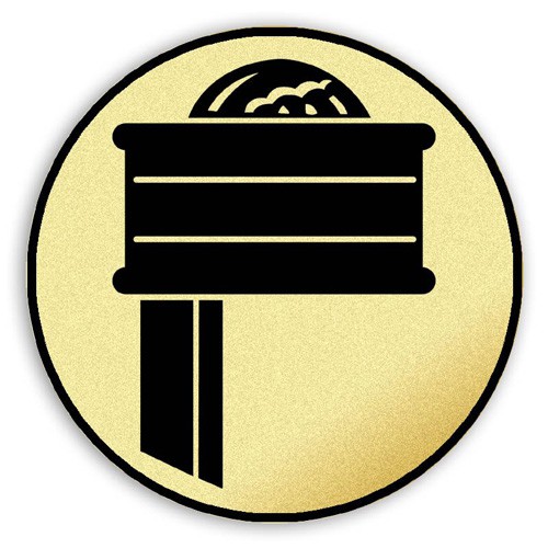 Tištěný emblém košíková, průměr 70 mm. Jedná se o zlatou samolepku s černým potiskem. Emblémy se lepí do medailí, kokard, plaket, trofejí a na víka pohárů.