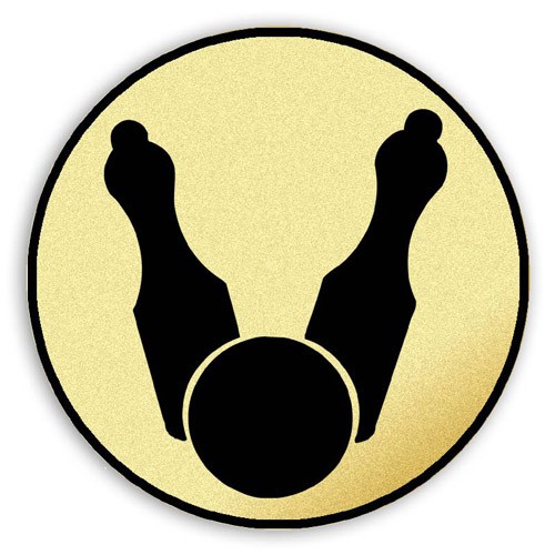 Tištěný emblém bowling, průměr 100 mm. Jedná se o zlatou samolepku s černým potiskem. Emblémy se lepí do medailí, kokard, plaket, trofejí a na víka pohárů.