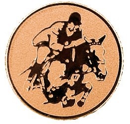 Kovový emblém jezdectví, průměr 25 mm; provedení bronz. Emblémy se umistňují na medaile, plakety, trofeje, kokardy a na víka pohárů.