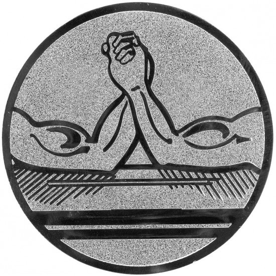 Kovový emblém páka - Armwrestling, průměr 25 mm; provedení stříbro. Emblémy se umistňují na medaile, plakety, trofeje, kokardy a na víka pohárů.