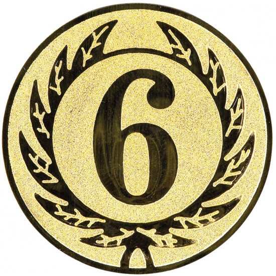 Kovový emblém 6. místo, průměr 50 mm; provedení zlato. Emblémy se umistňují do medailí, kokard, plaket, trofejí a na víka pohárů.