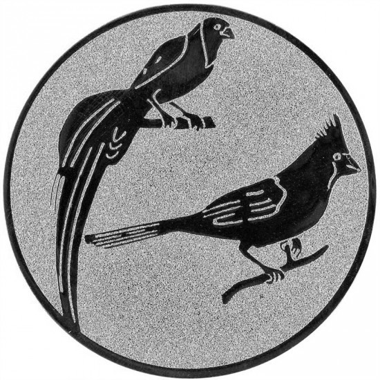 Kovový emblém exoti, průměr 50 mm; provedení stříbro. Emblémy se umistňují na medaile, plakety, trofeje, kokardy a na víka pohárů.
