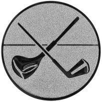 Kovový emblém golf, průměr 50 mm; provedení stříbro. Emblémy se umistňují na medaile, plakety, trofeje, kokardy a na víka pohárů.