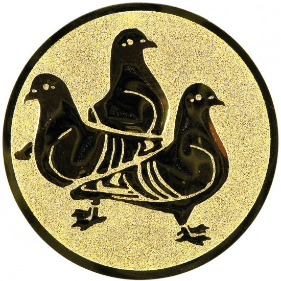 Kovový emblém holubi, průměr 50 mm; provedení zlato. Emblémy se umistňují na medaile, plakety, trofeje, kokardy a na víka pohárů.