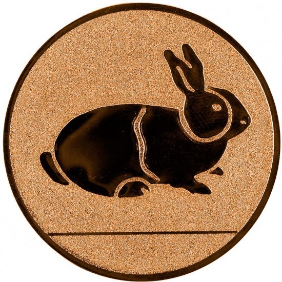 Kovový emblém králík, průměr 50 mm; provedení bronz. Emblémy se umistňují do medailí, kokard, plaket, trofejí a na víka pohárů.
