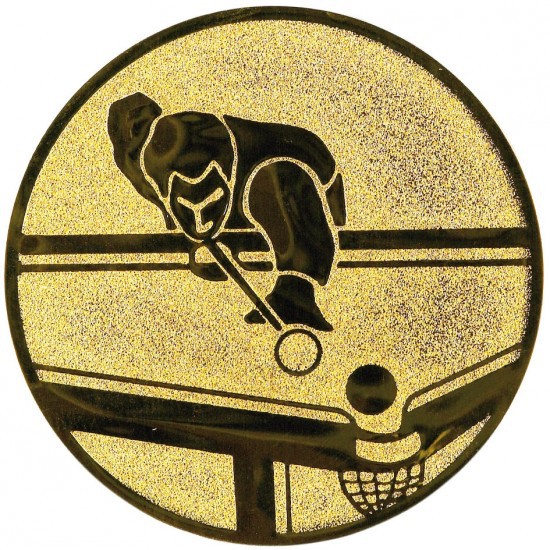 Kovový emblém kulečník, průměr 50 mm; provedení zlato. Emblémy se umistňují do medailí, kokard, plaket, trofejí a na víka pohárů.