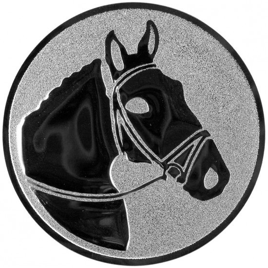 Kovový emblém kůň, průměr 50 mm; provedení stříbro. Emblémy se umistňují do medailí, kokard, plaket, trofejí a na víka pohárů.