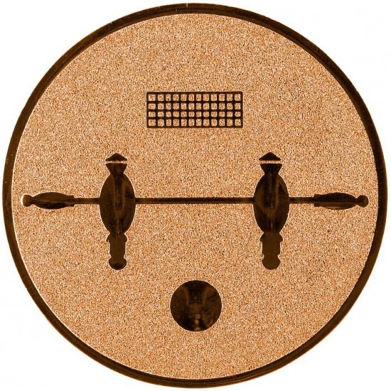 Kovový emblém stolní fotbálek, průměr 50 mm; provedení bronz. Emblémy se umistňují do medailí, kokard, plaket, trofejí a na víka pohárů.