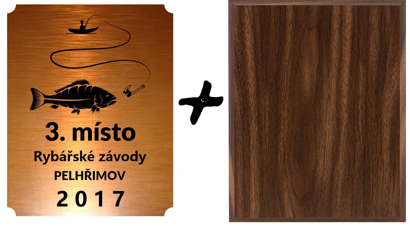 Dřevěná plaketa o rozměrech 115 x 150 mm o tloušťce 18 mm vhodná jako prestižní ocenění k zavěšení na zeď nebo postavení na stojánek. Možno použít svisle i vodorovně. V ceně plakety je plastový štítek s černým gravírovaným textem na bronzovém plastu o rozměrech 95x145 mm. Grafiku nebo vlastní návrhy je možné dohrát na konci objednávky.