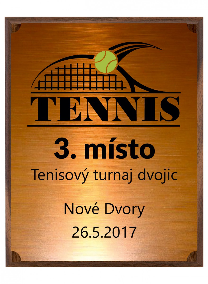 Dřevěná plaketa o rozměrech 125 x 175 mm o tloušťce 18 mm vhodná jako prestižní ocenění k zavěšení na zeď nebo postavení na stojánek. Možno použít svisle i vodorovně. V ceně plakety je plechový štítek s plnobarevným sublimačním potiskem na bronzovém plechu o rozměrech 120x170 mm. Grafiku nebo vlastní návrhy je možné dohrát na konci objednávky.
