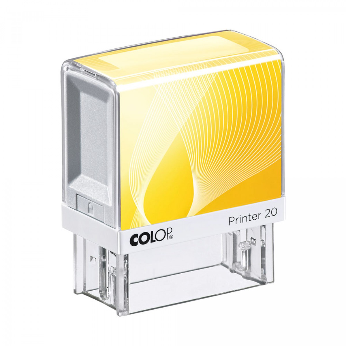 Plastové samobarvící razítko COLOP Printer 20 s polštářkem a bez štočku, velikost otisku 38x14 mm, barva krytu žlutá. Malé kapesní razítko maximálně 4 řádky tisku. Mnohostranně použitelná razítka pro text i jednoduchou grafiku v různobarevných plastových kombinacích žlutá. Moderní design dělá COLOP Printer menším a lépe do ruky padnoucím, než srovnatelné typy konkurenčních produktů. Mnohokrát prověřeno - perfektní otisk, který může být v různých barvách (černá, modrá, červená, zelená, fialová).