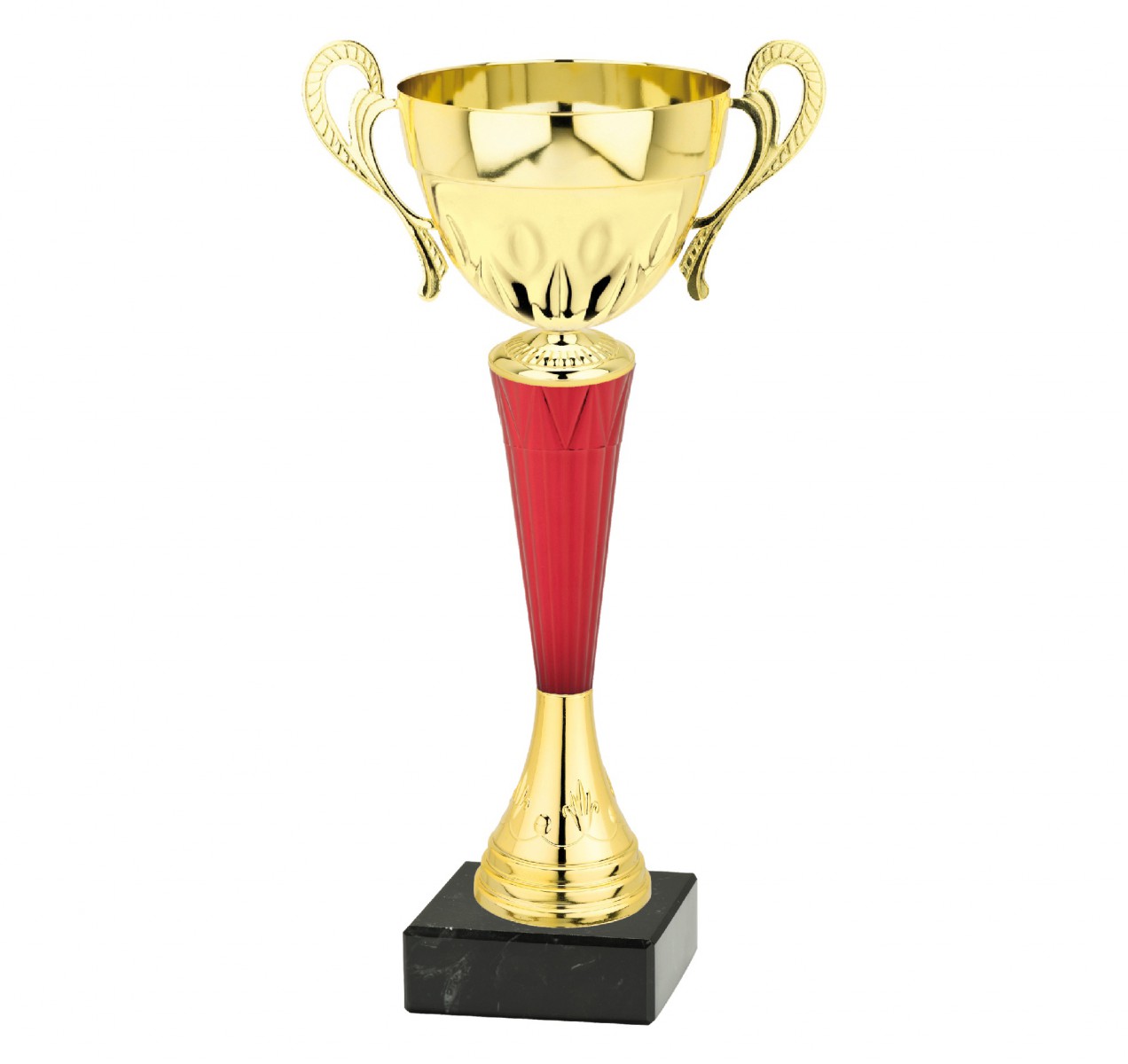 Sportovní pohár S002.8 ROSSO barva zlatá, výška bez víka 23,5 cm, velikost kalichu 100 mm, barva nohy červená. Maxi...