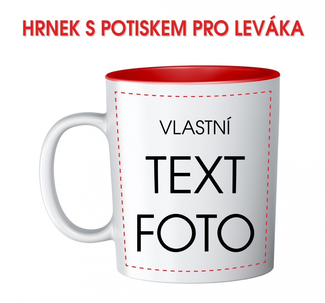 Bílý keramický s červeným vnitřkem s potiskem.V ceně výrobku je bílý keramický hrnek včetně potisku vlastním motivem.