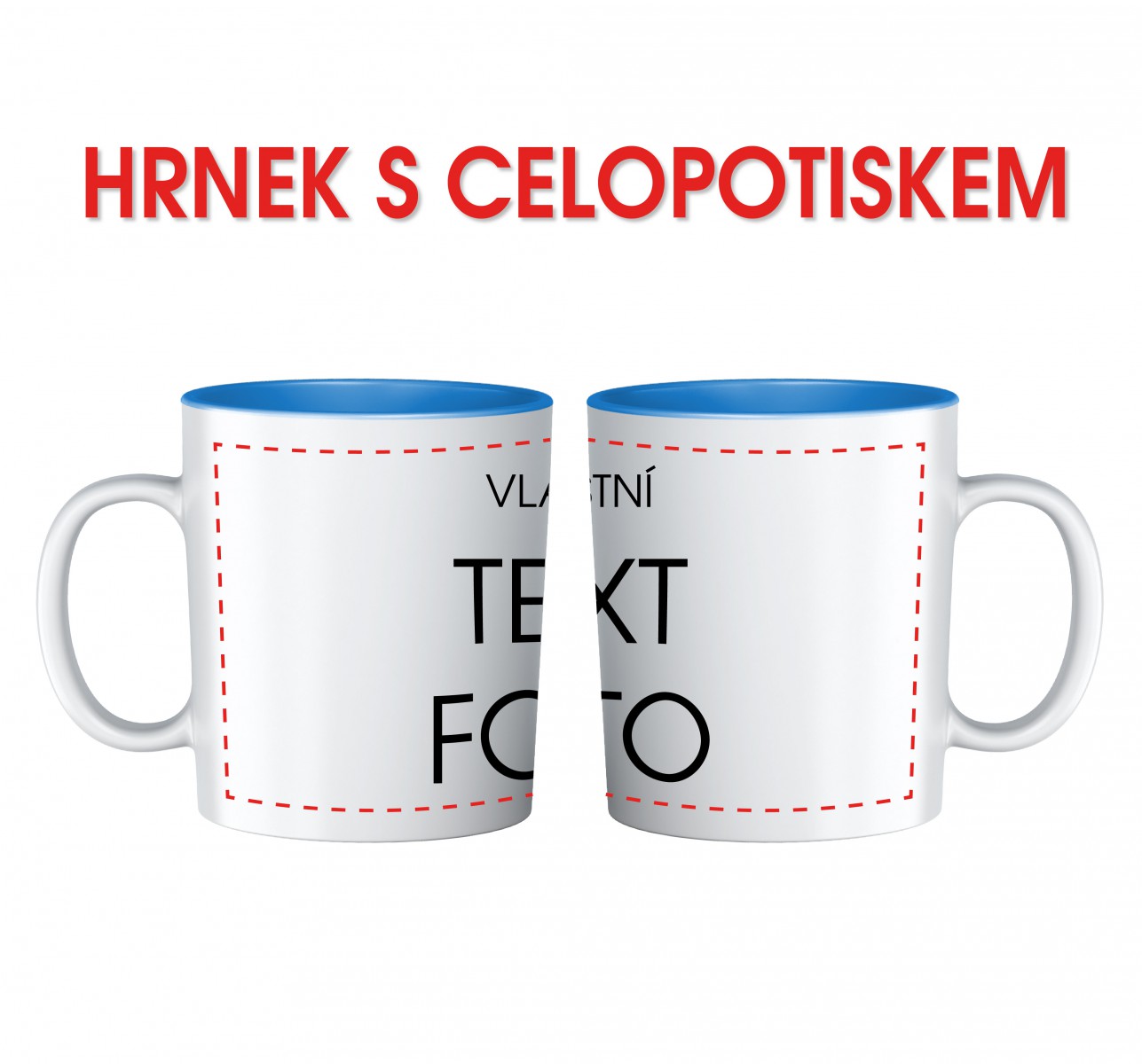 Bílý keramický se světle modrým vnitřkem celopotisk. V ceně výrobku je bílý keramický hrnek pro sublimační potisk a samotný potisk vlastním motivem. Potisk hrnků je kvalitní a stálý, provádí se přímou sublimací do glazury, což zaručuje neomezenou životnost potisku, neoloupe se jako běžné potisky. Technologie sublimačního tisku umožňuje plnobarevné provedení - fotopotisk, kvalita výsledného potisku je však závislá na kvalitě dodané fotografie! Rozměr potisku 80 mm (výška) x 200 mm (obvod), objem 330 ml. Hrnky mají certifikát o hygienické nezávadnosti. Ideální dárek pro nejrůznější příležitosti. Vložte fotku se svým oblíbeným obrázkem nebo fotkou a my ji ručně upravíme a přizpůsobíme velikosti hrnečku a můžete obrázek doplnit o text, věnování nebo přání.