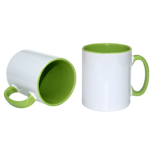 Bílý keramický se světle zeleným vnitřkem a uchem na střed s jednostranným potiskem. V ceně výrobku je bílý keramický hrnek včetně potisku vlastním motivem.