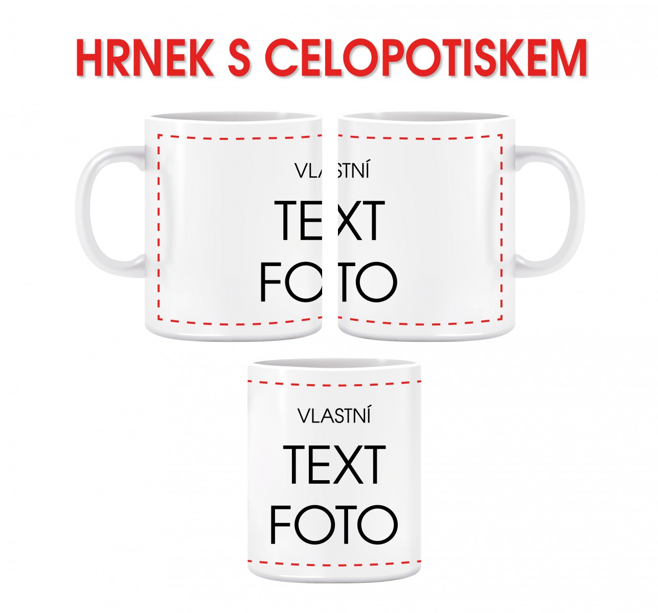 Bílý keramický hrnek s Vaším celopotiskem sublimací přímo do glazury. V ceně výrobku je bílý keramický hrnek pro sublimační potisk a samotný potisk vlastním motivem.