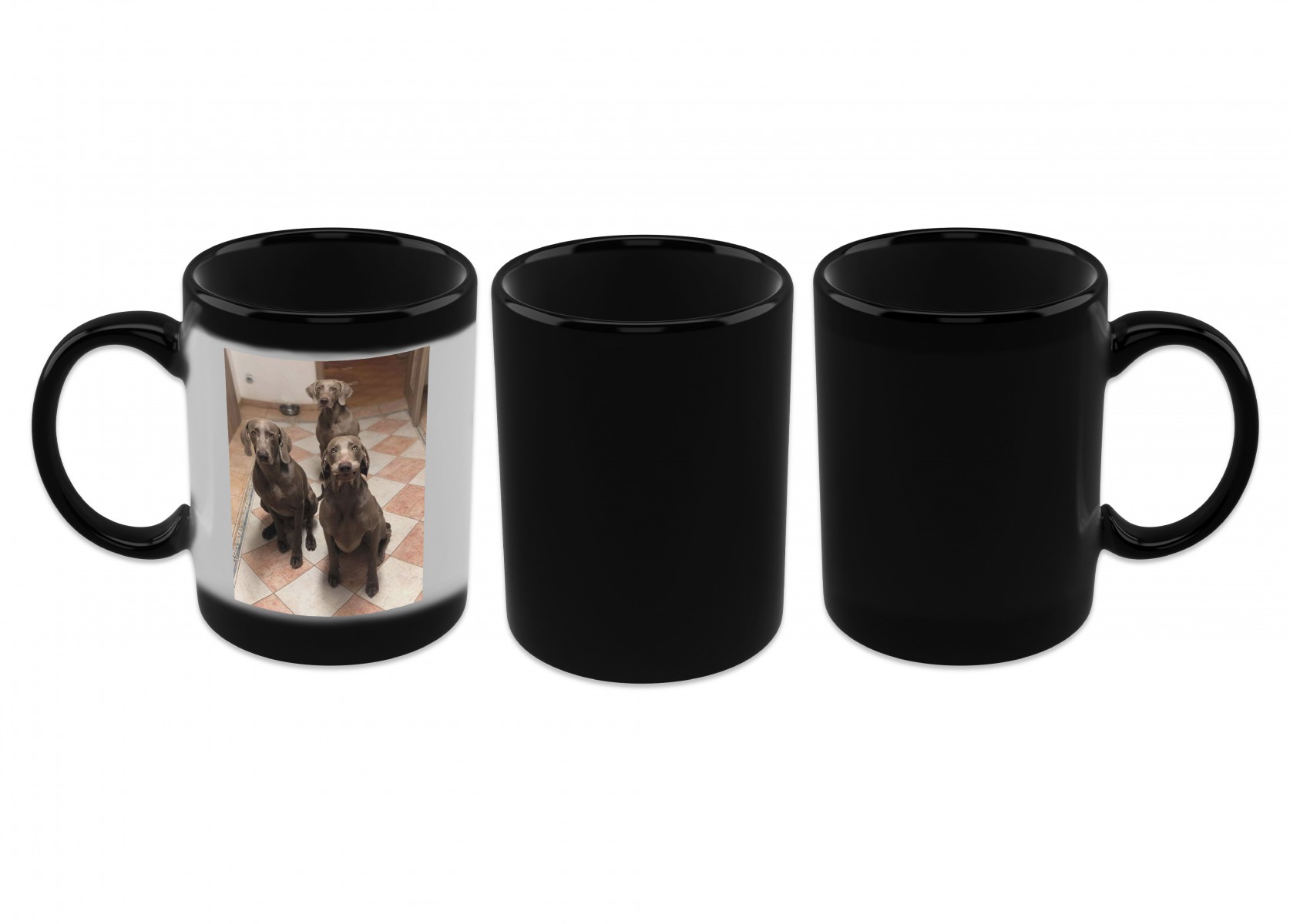 Hrnek MAGIC černý s černým vnitřkem pro leváka působením horkého nápoje odhalí tento hrnek s natištěnou fotku či obrázek. Potisk se provádí na speciálně upravené hrnky za pomocí tepla a tlaku. Po nalití teplého nápoje barva mizí a zůstane jen Váš potisk. Tento hrnek není vhodný do myčky. Na hrnek je možné umístit fotografie např. rodiny, firemní logo, domací zvířátka atd..