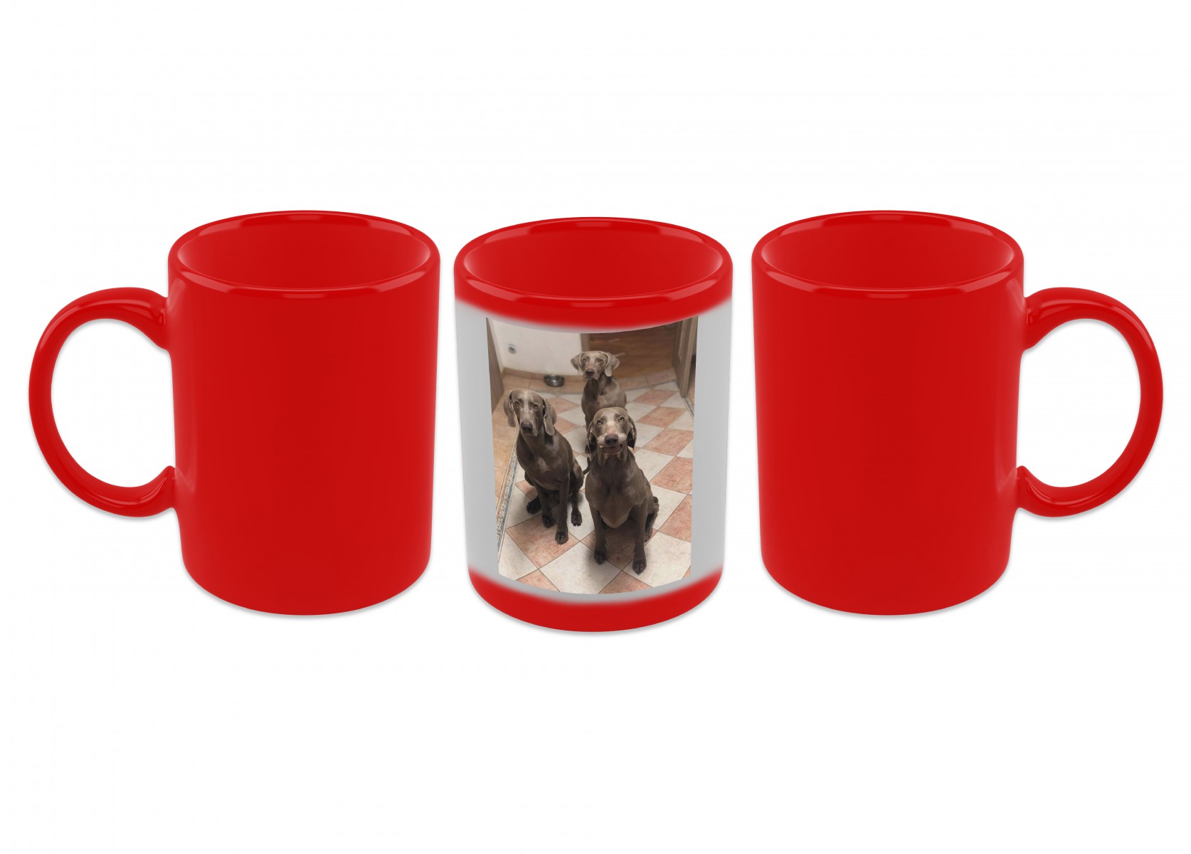 Hrnek MAGIC červený pro leváka působením horkého nápoje odhalí tento hrnek s natištěnou fotku či obrázek. Potisk se provádí na speciálně upravené hrnky za pomocí tepla a tlaku. Po nalití teplého nápoje barva mizí a zůstane jen Váš potisk. Tento hrnek není vhodný do myčky. Na hrnek je možné umístit fotografie např. rodiny, firemní logo, domací zvířátka atd..