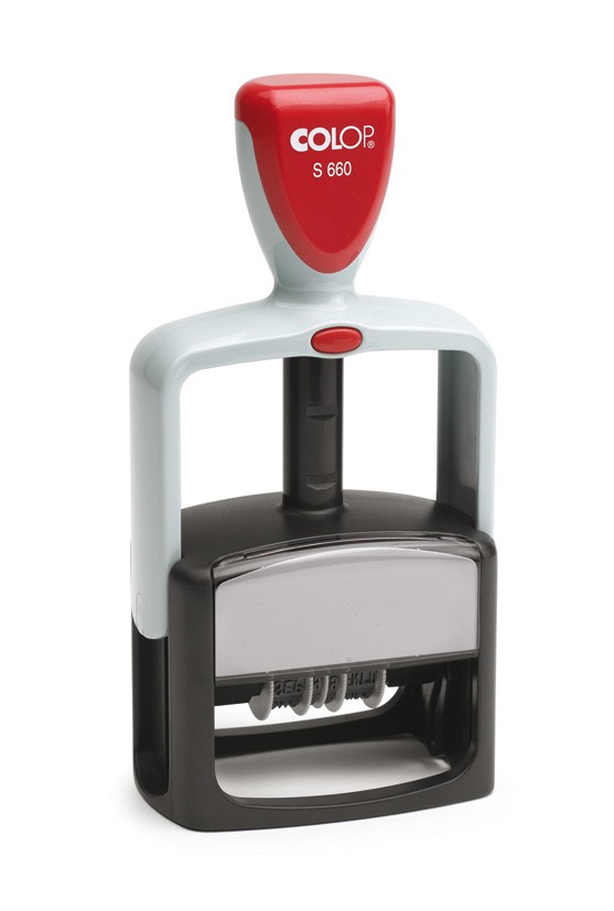Samobarvící datumové razítko Office Line S 660 s plastovým stativem a textovou deskou o velikosti 58 x 37 mm s datumem ve formátu den/měsíc/rok, cena razítka je bez štočku s libovolným textem. S možností až 7 řádků textu. Standardní barva otisku: černá. Moderní design dělá Office Line Dater do ruky lépe padnoucí razítko pro každodenní použití, než srovnatelné typy konkurenčních produktů. Mnohokrát prověřeno - perfektní otisk.