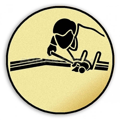 Tištěný emblém karambol, průměr 30 mm. Jedná se o zlatou samolepku s černým potiskem. Emblémy se lepí do medailí, kokard, plaket, trofejí a na víka pohárů.