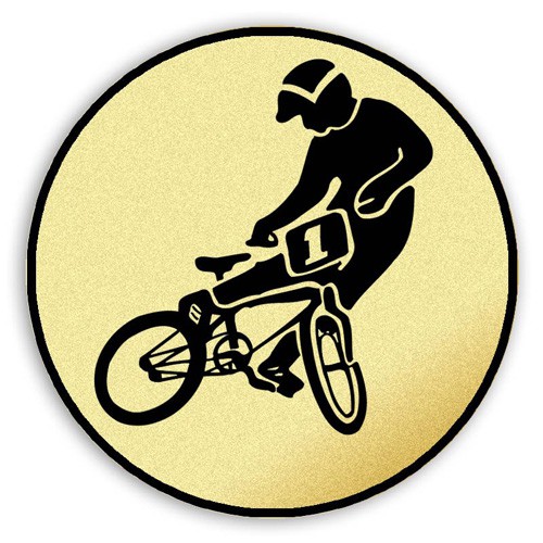 Tištěný emblém cyklotriál, průměr 80 mm. Jedná se o zlatou samolepku s černým potiskem. Emblémy se lepí do medailí, kokard, plaket, trofejí a na víka pohárů.