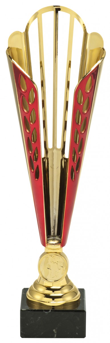 Sportovní pohár TC180.2 ROSSO, barva zlatá/červená s výškou 34 cm a průměrem 90 mm a s možností umístění emblému 25...