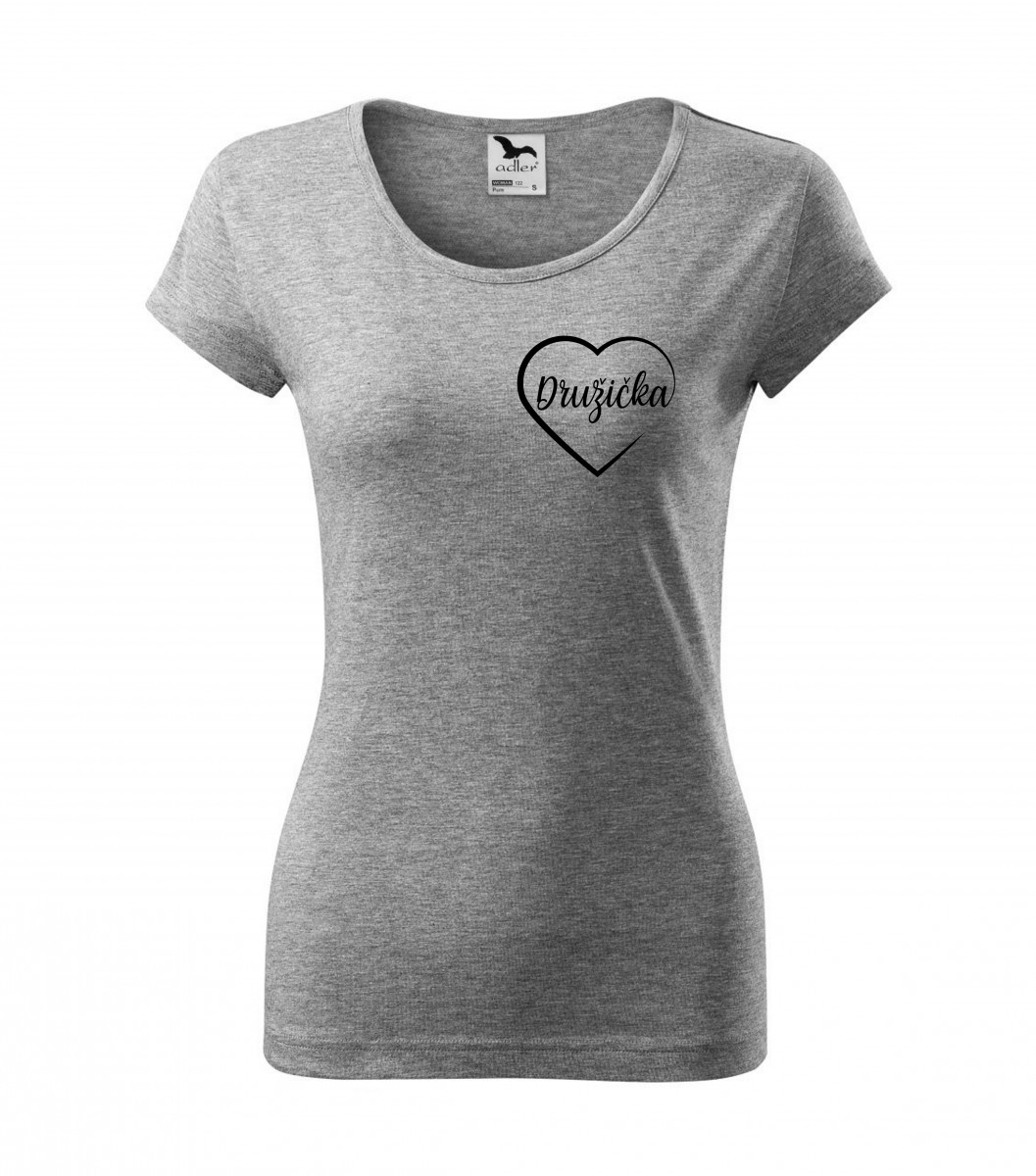 Tričko pro družičku srdce s velmi krátkým rukávem. Reprezentativní dárkový předmět. K potisku využíváme kvalitní dámská trička střední gramáže s velmi krátkým rukávem a kulatým výstřihem. Díky 100% materiálu bavlny se budete u jeho nošení cítit příjemně. Kvalitní průkrčník s přídavkem 5 % elastanu se zpevňující ramenní páskou. Silikonová úprava zajišťuje měkký a splývavý omak. Projmutý střih u dámského trika do hloubky boku zvýrazňující dámskou siluetu. Vynikající kvalita materiálu a šití. Všechny švy zdvojeny.