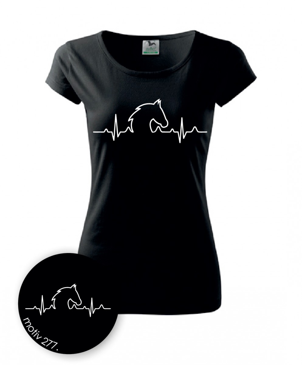 Tričko s koněm 277 s velmi krátkým rukávem. Reprezentativní dárkový předmět. K potisku využíváme kvalitní dámská trička střední gramáže s velmi krátkým rukávem a kulatým výstřihem. Díky 100% materiálu bavlny se budete u jeho nošení cítit příjemně. Kvalitní průkrčník s přídavkem 5 % elastanu se zpevňující ramenní páskou. Silikonová úprava zajišťuje měkký a splývavý omak. Projmutý střih u dámského trika do hloubky boku zvýrazňující dámskou siluetu. Vynikající kvalita materiálu a šití. Všechny švy zdvojeny.