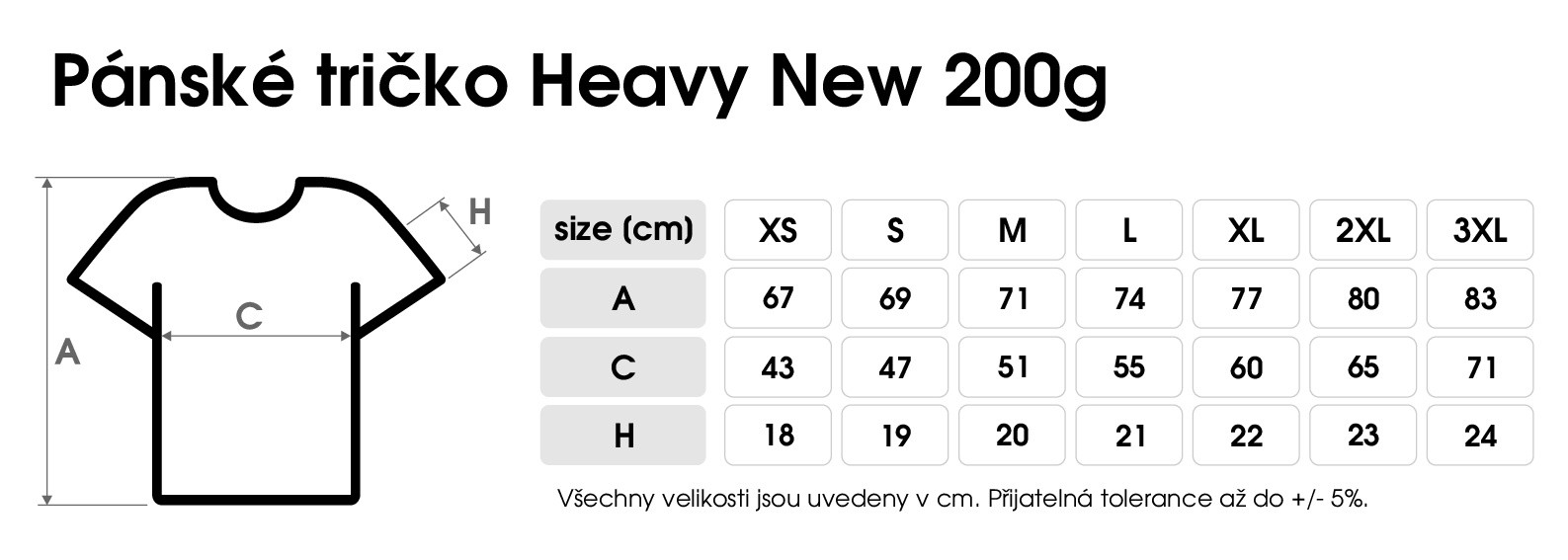 - Velikost pánského trička: XS, S, M, L, XL, XXL, XXXL