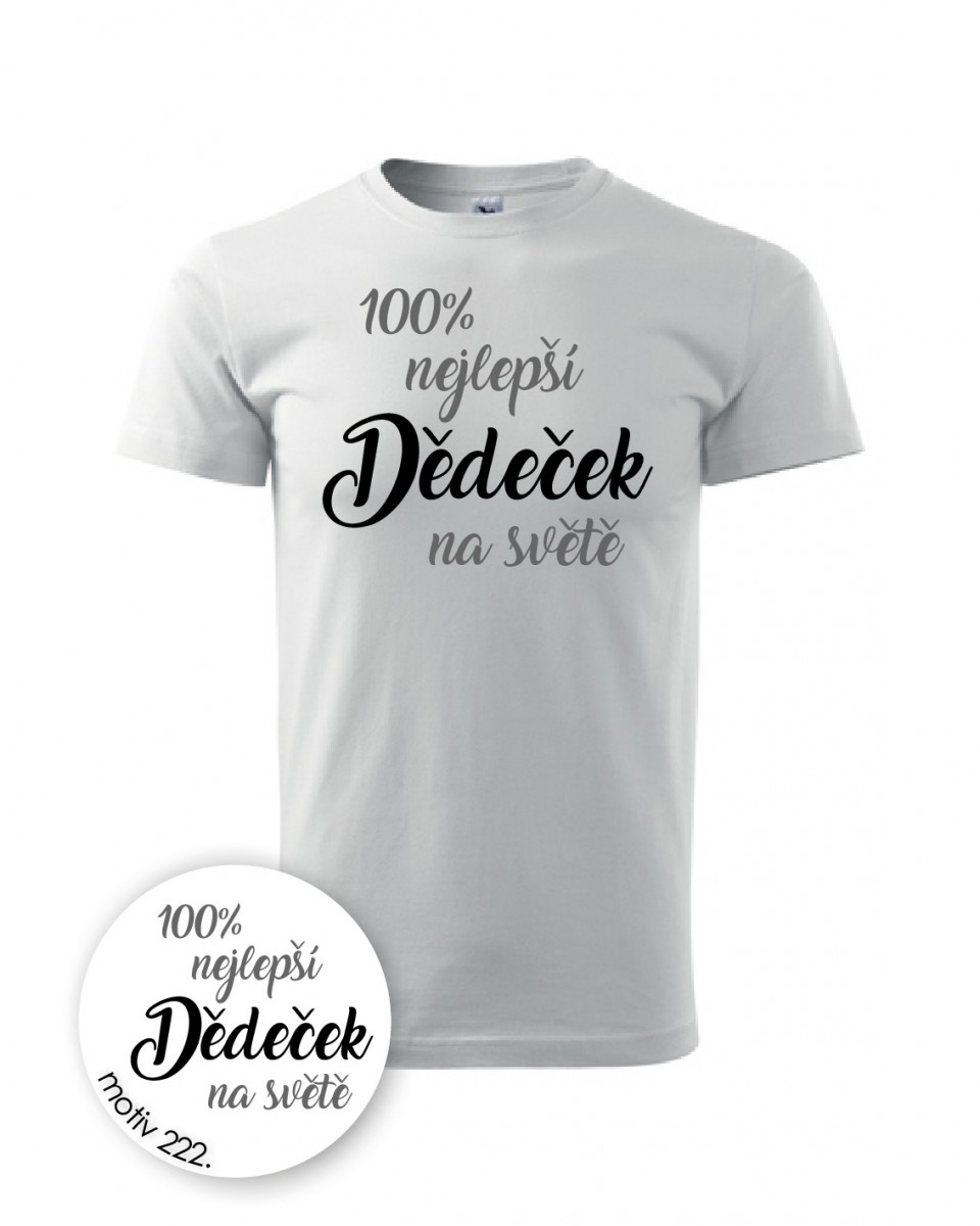 Tričko nejlepší dědeček 222 bílé s krátkým rukávem. Reprezentativní dárkový předmět. K potisku využíváme kvalitní pánská trička střední gramáže s krátkým rukávem a kulatým výstřihem. Díky 100% materiálu bavlny se budete u jeho nošení cítit příjemně. Kvalitní průkrčník s přídavkem 5 % elastanu se zpevňující ramenní páskou. Silikonová úprava zajišťuje měkký a splývavý omak. Vynikající kvalita materiálu a šití. Všechny švy zdvojeny.