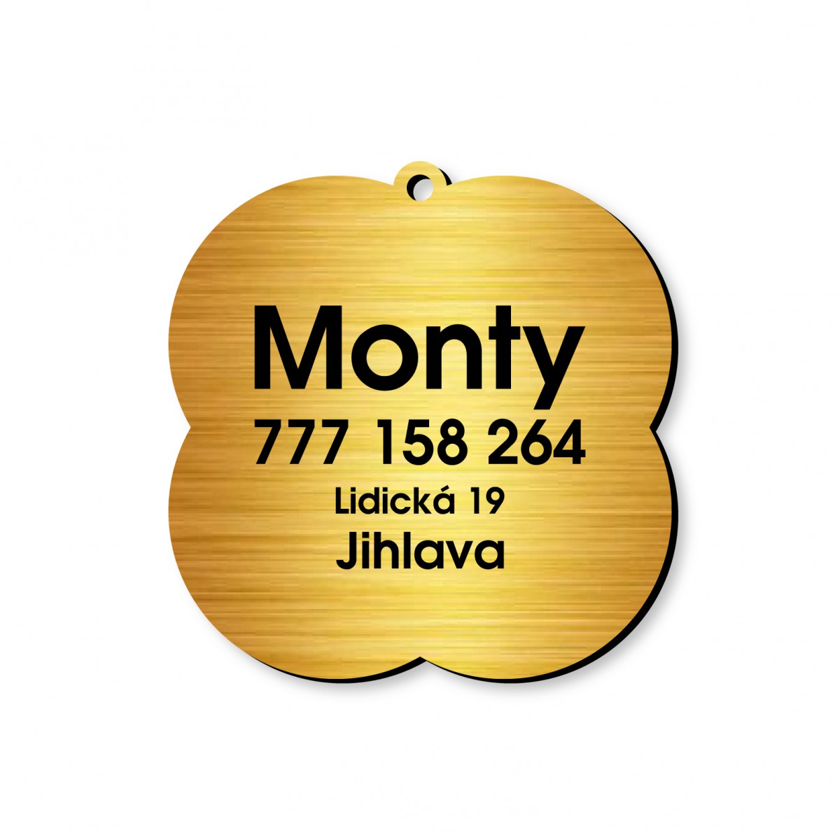 Psí známka je vyrobena z dvouvrstvého plastu o rozměru 35x33 mm a s otvorem pro kroužek k uchycení na obojek.