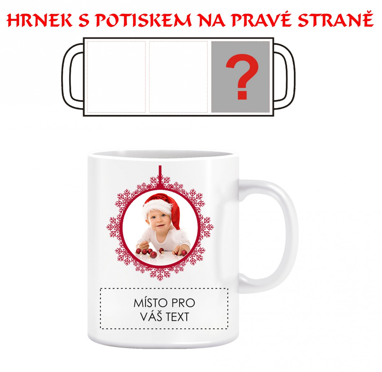 Bílý keramický hrnek s vánočním motivem 08 potištěný sublimací do glazury z pravé strany s možností vložení vlástní fotky a úpravy textu dle Vašeho přání. Potisk hrnků je kvalitní a stálý, provádí se přímou sublimací do glazury, což zaručuje neomezenou životnost potisku, neoloupe se jako běžné potisky. Hrnky mají certifikát o hygienické nezávadnosti.