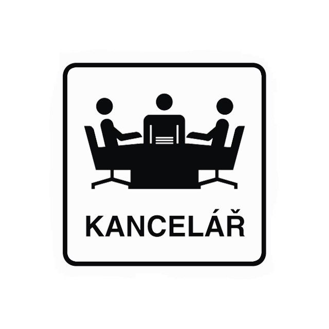 Piktogram kancelář samolepka s potiskem v bílé barvě. Piktogram o rozměru 80x80 mm o síle 0,2 mm je samolepící a vhodný na hladké podklady.