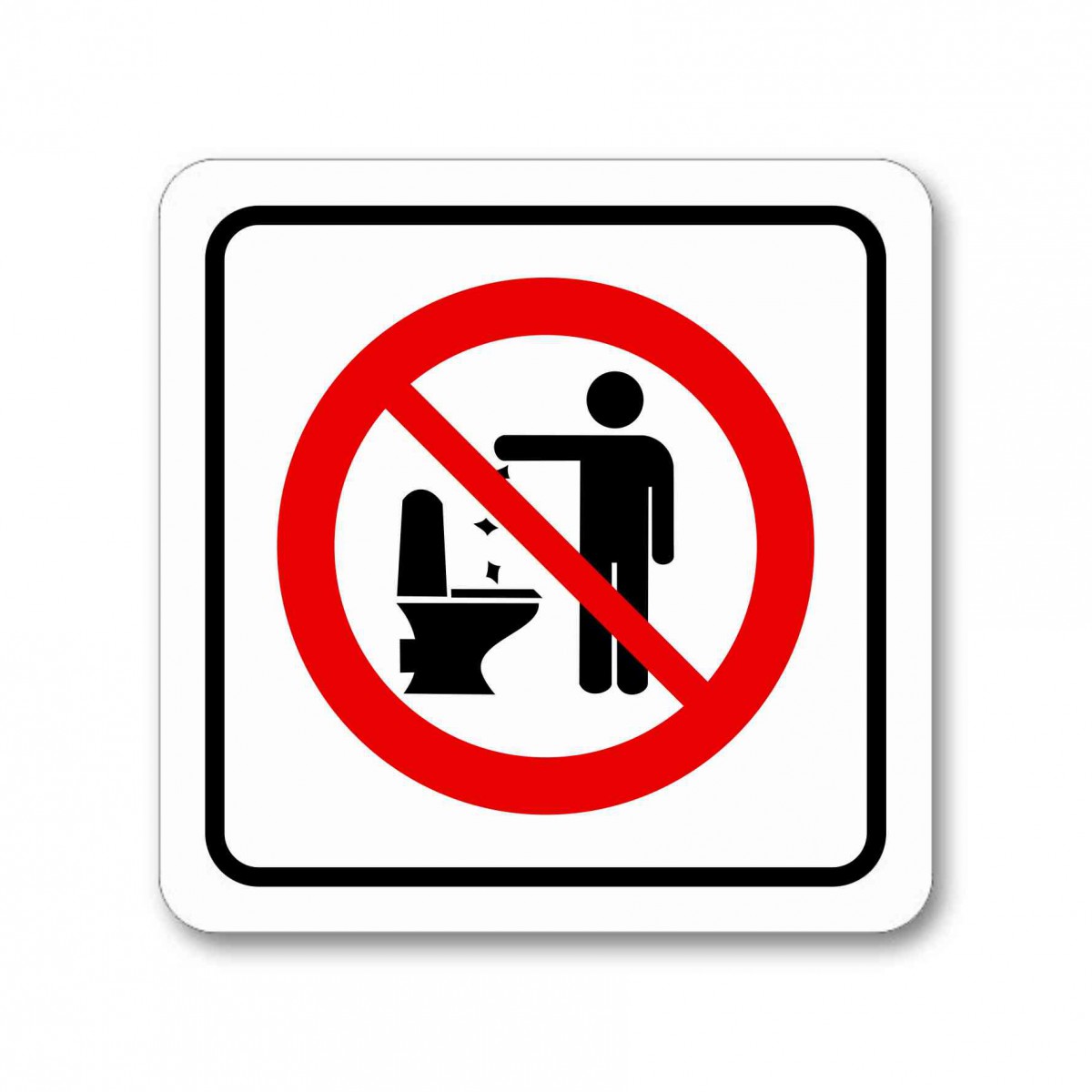 Piktogram zákaz házení odpadu do wc muži je samolepka s barevným potiskem v bílé barvě. Piktogram o rozměru 80x80 mm o síle 0,2 mm je samolepící a vhodný na hladké podklady.