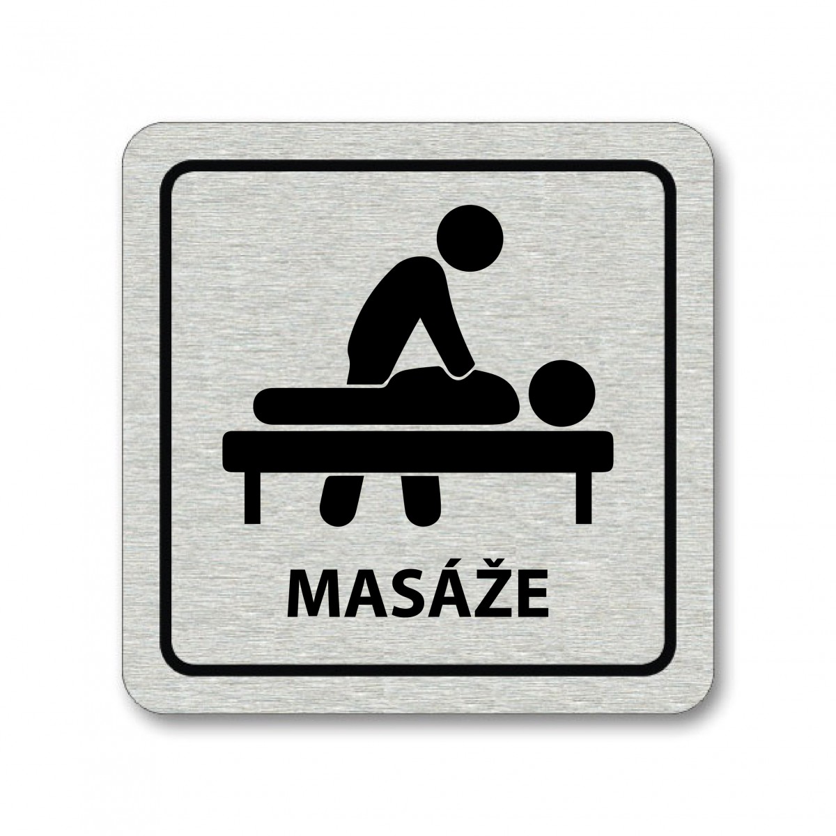 Piktogram Masáže je zhotoven sublimačním potiskem eloxovaného hliníku. Piktogram o rozměru 80x80mm o síle 0,56 mm.