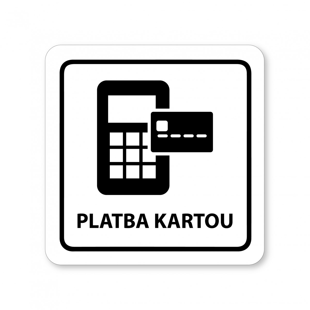 Piktogram platba kartou je zhotoven sublimačním potiskem eloxovaného hliníku. Piktogram o rozměru 80x80mm o síle 0,8 mm.