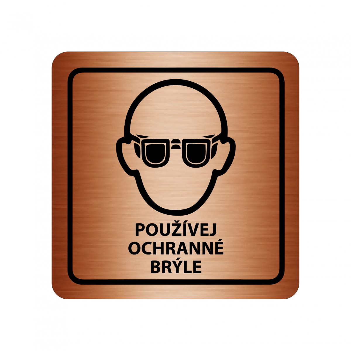 Piktogram Používej ochranné brýle je zhotoven sublimačním potiskem eloxovaného hliníku. Piktogram o rozměru 80x80mm o síle 0,8 mm je zezadu opatřen samolepící oboustrannou páskou. Výrobek je určen do interiéru.