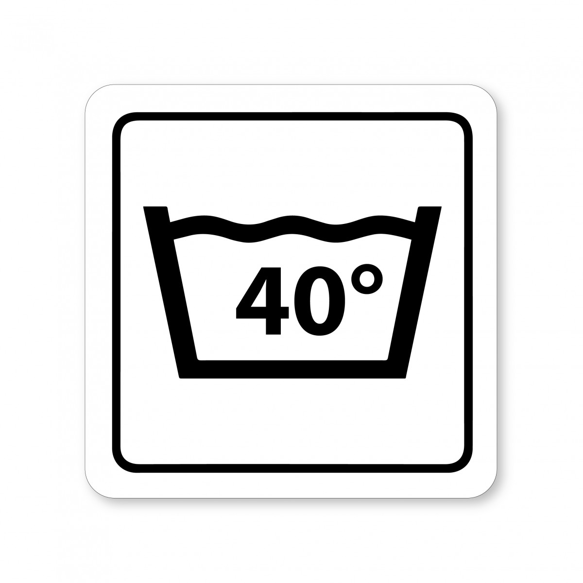 Piktogram Prát na 40 je zhotoven sublimačním potiskem eloxovaného hliníku. Piktogram o rozměru 80x80mm o síle 0,56 mm.