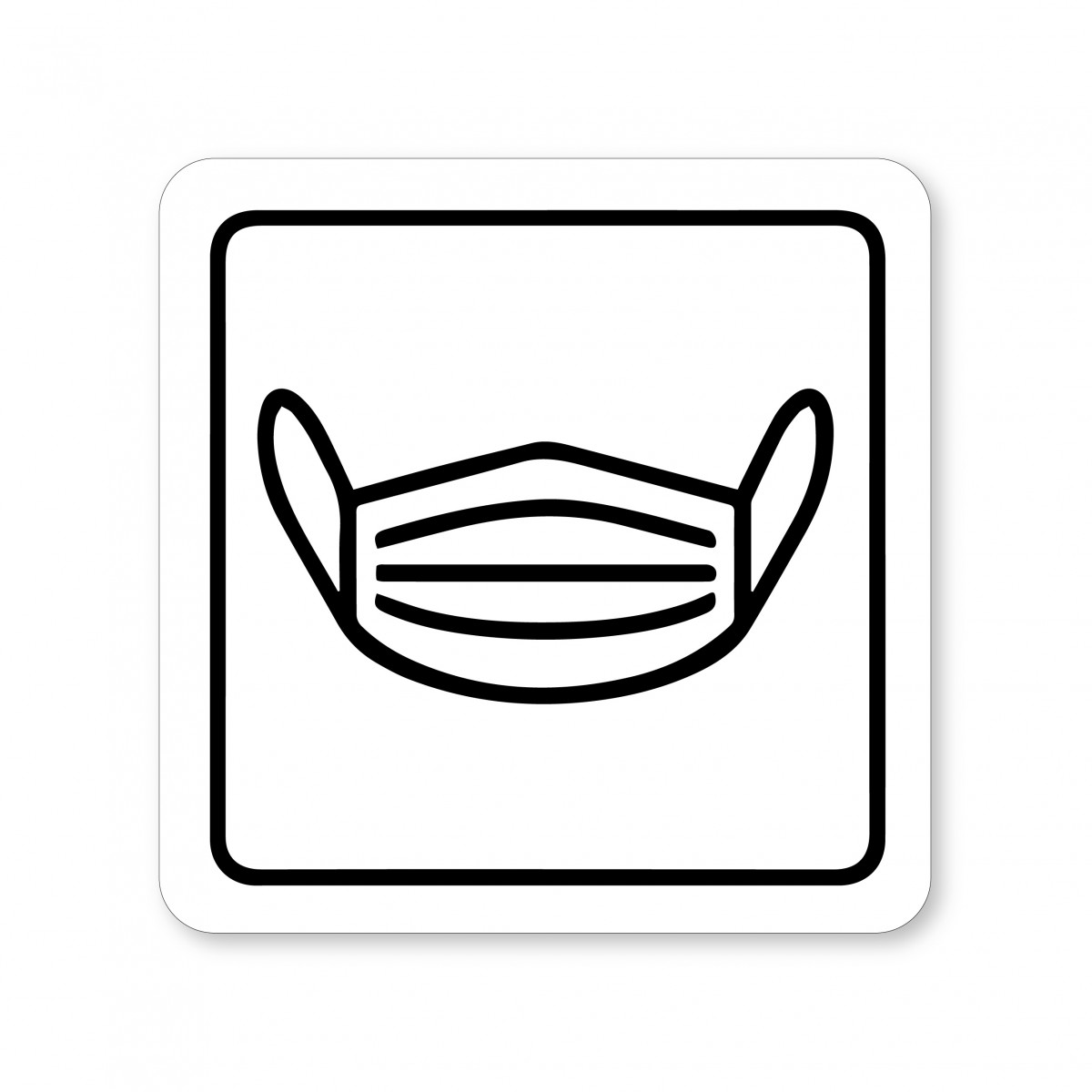 Piktogram Rouška je zhotoven sublimačním potiskem eloxovaného hliníku. Piktogram o rozměru 80x80mm o síle 0,56 mm.