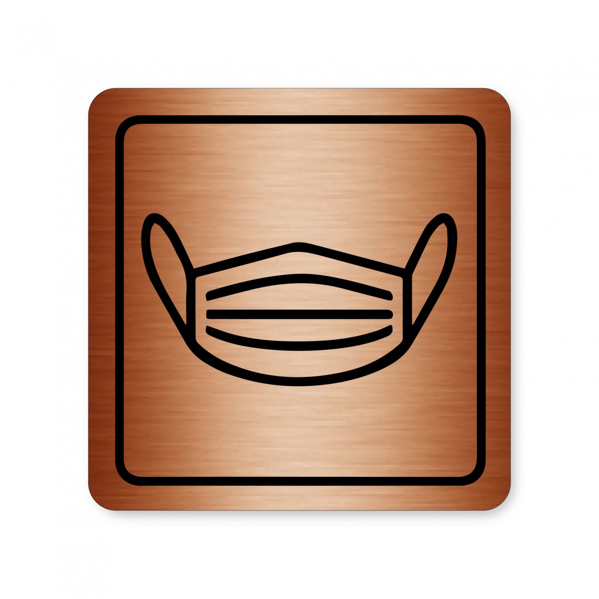 Piktogram Rouška je zhotoven sublimačním potiskem eloxovaného hliníku. Piktogram o rozměru 80x80mm o síle 0,56 mm.
