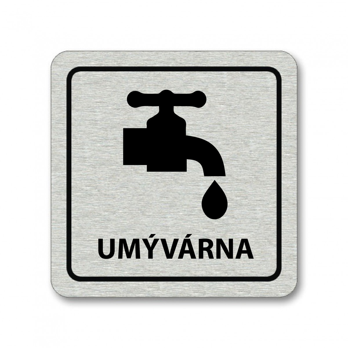 Piktogram Umývárna je zhotoven sublimačním potiskem eloxovaného hliníku. Piktogram o rozměru 80x80mm o síle 0,8 mm.
