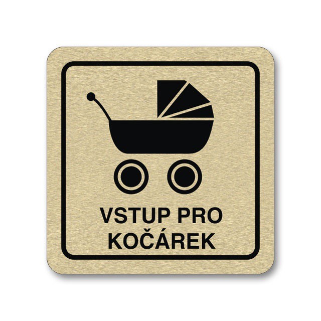 Piktogram vstup s kočárkem je zhotoven sublimačním potiskem eloxovaného hliníku ve zlaté barvě. Piktogram o rozměru 80x80 mm o síle 0,8 mm.