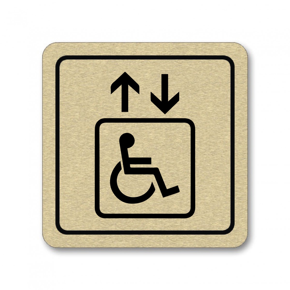 Piktogram Výtah pro invalidy je zhotoven sublimačním potiskem eloxovaného hliníku. Piktogram o rozměru 80x80mm o síle 0,8 mm.