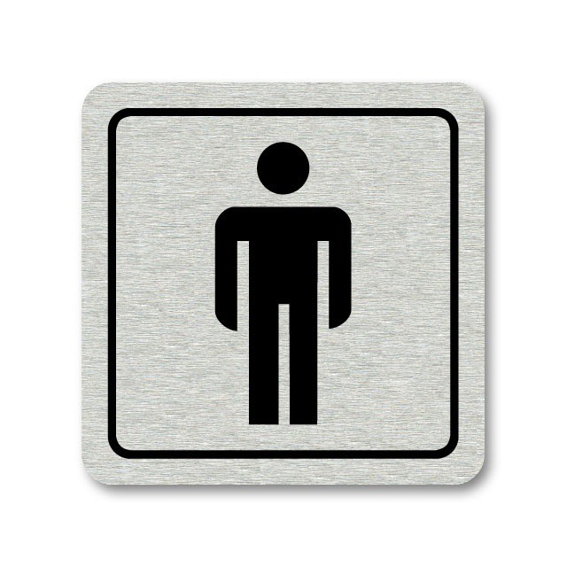 Piktogram WC muži je zhotoven sublimačním potiskem eloxovaného hliníku ve stříbrné barvě. Piktogram o rozměru 80x80 mm o síle 0,8 mm a vhodný na všechny druhy podkladů.